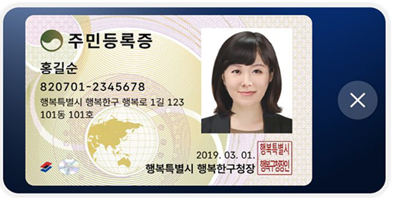 IC칩 내장 주민등록증은 모바일 주민등록증 발급 및 사용에 있어 더 높은 보안성을 제공합니다.
