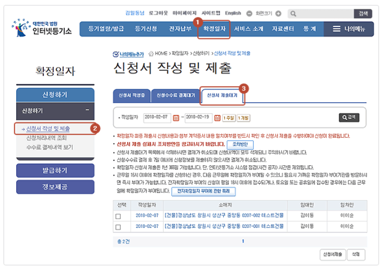 3. 결과 확인: 제출 후 결과를 체크하고 확정일자 부여 대기.