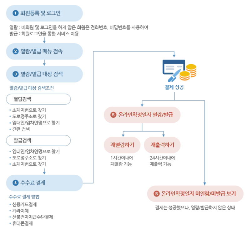 - 제출 완료: 신청 결과 확인 및 확정일자 부여 대기